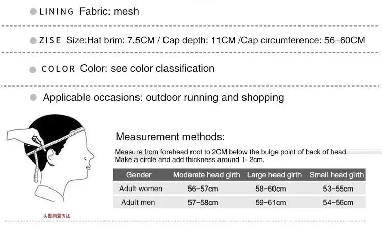 Wear this comfortable hat for outdoor activities to protect the skin from harmful ultraviolet damage, and make your hair away from your face and eyes.